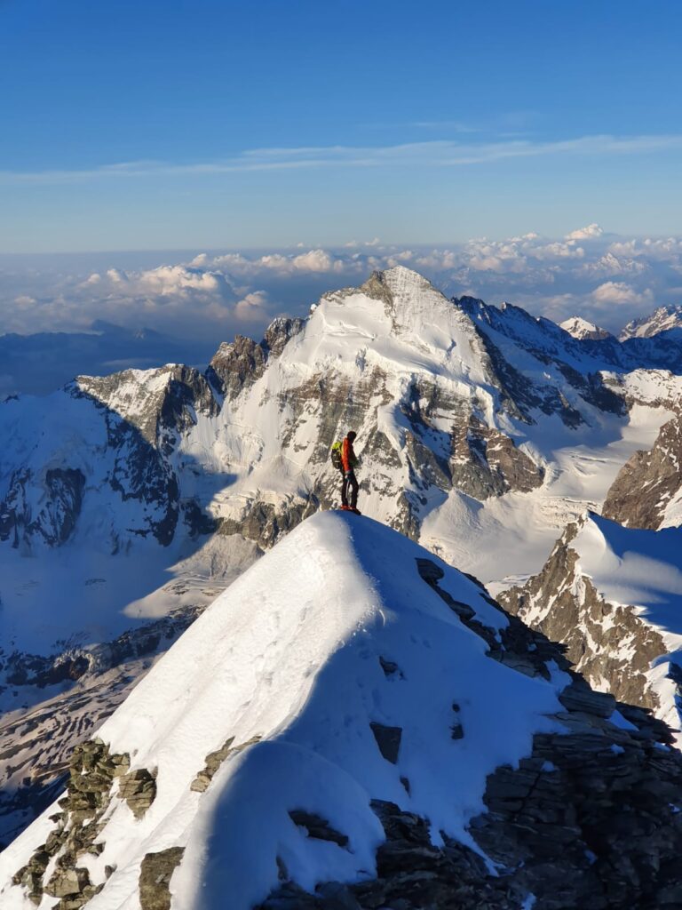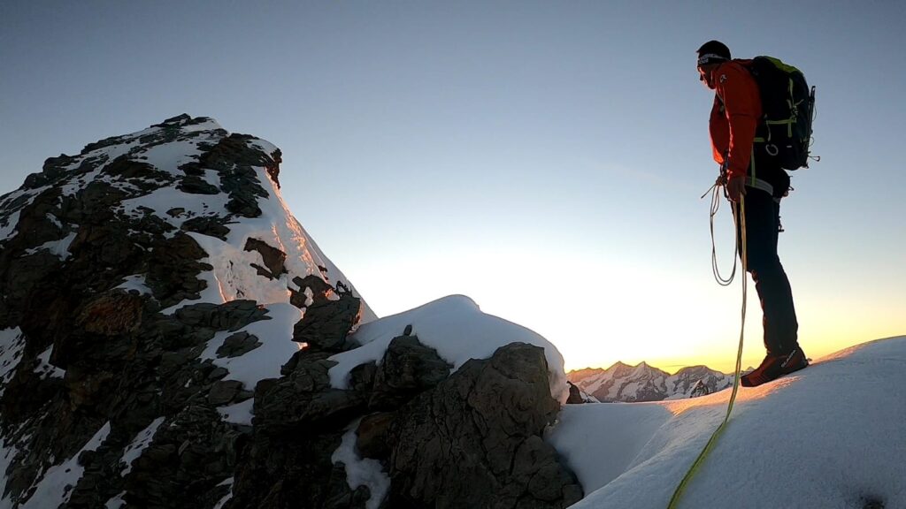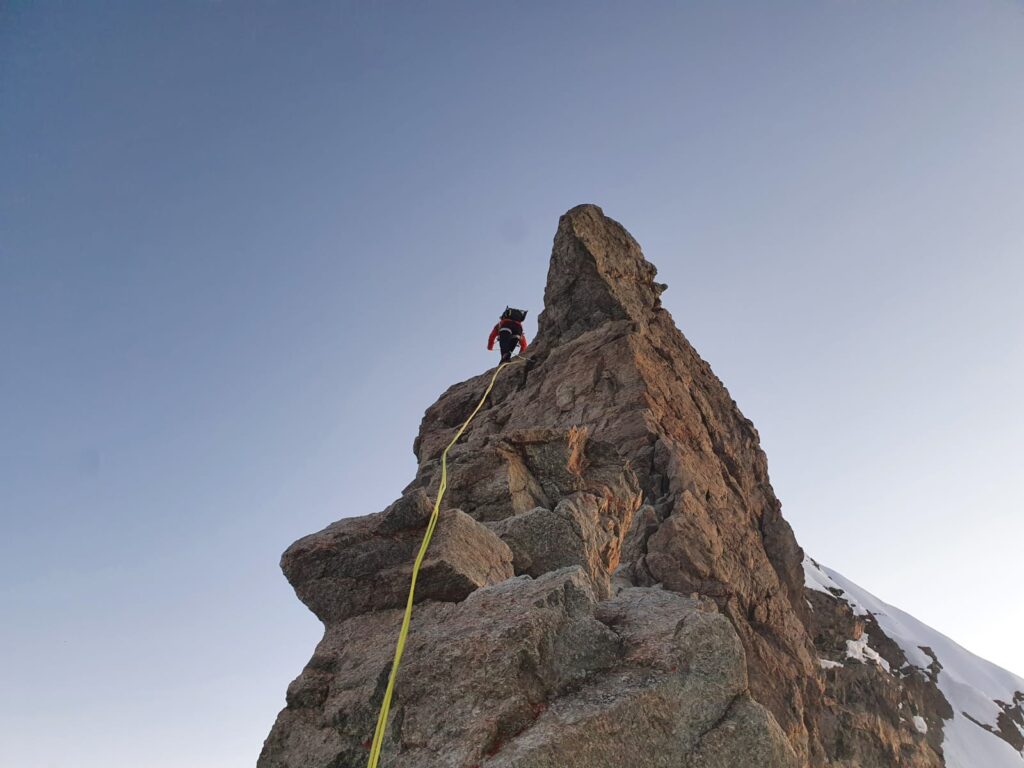 Illuminata dal sole splende nel cielo con la corda e la piccozza a tracolla. È emozionante, tutto in quel momento è bello…semplicemente bello.