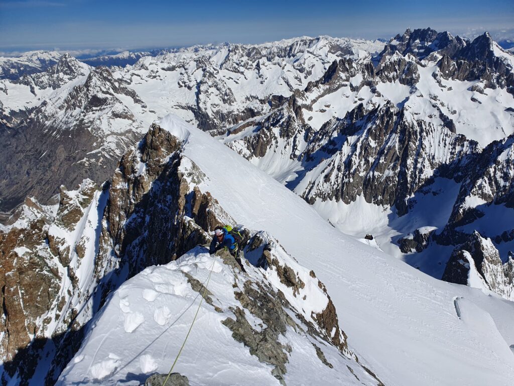 Intanto sorge anche il sole e illumina il grandioso versante delle Ecrins.