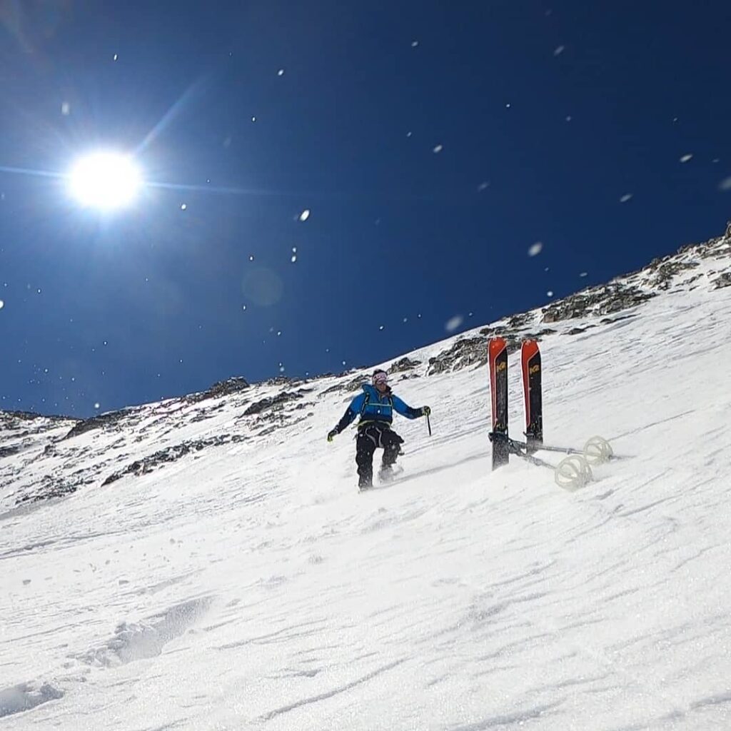 La neve ha un ottimo rigelo, oggi c’è anche la traccia, conosciamo la salita e voliamo.