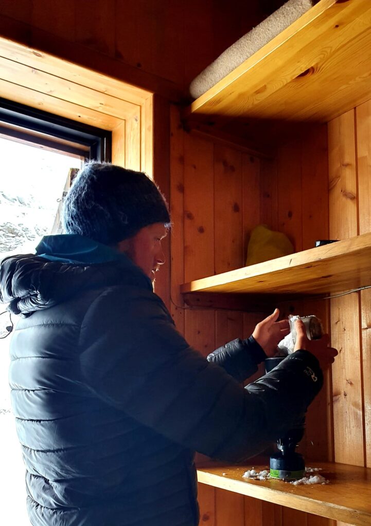 Ci fermiamo qualche decina minuti, con il fornelletto sciogliamo un po di neve per riempire i thermos. Gli occhi sono stanchi e nell’attesa quasi si chiudono.