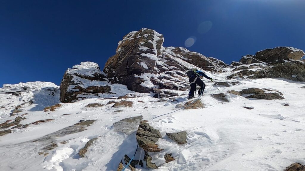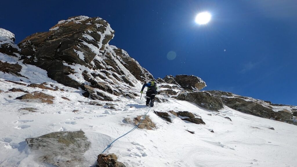 Decidiamo di percorrere la Cresta Tiefenmatten per essere un po più tranquilli dal punto di vista valanghe, ma la scelta non è delle più felici.