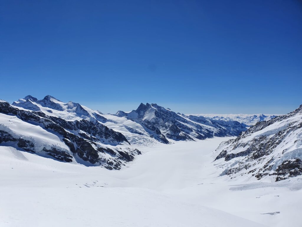 Quando usciamo dal tunnel della stazione, difronte a noi si estende il Jungfraufirn, un’enorme lingua glaciale che si immette nel più grande ghiacciaio d’Europa l’Aletschgletscher.