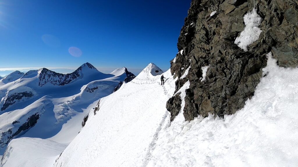 Siamo in prossimità della cresta finale, dove si uniscono in una sola traccia la Via Normale Italiana e quella Svizzera.